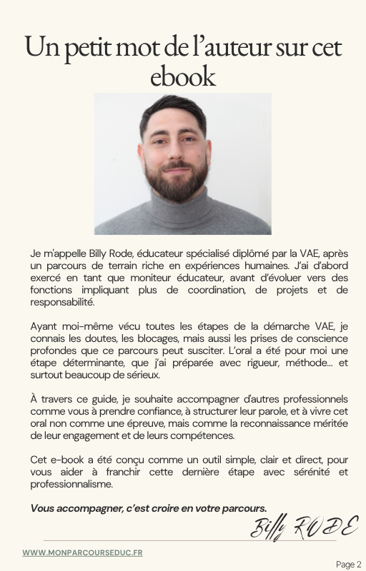 Et en cadeau, vous recevrez le mini e-book “Les 50 questions les plus souvent posées en oral VAE”, un support idéal pour vous entraîner et préparer encore mieux votre oral.🎁